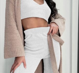 Women’s Two-piece Set Dresses New Fashion Fall Winter Hooded Shawl Long-sleeved Vest Short Skirt