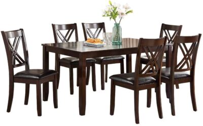7pcs Dining Set Dining Table 6 Side Chairs Clean Espresso Finish Cushion Seats X Design Back Chairs