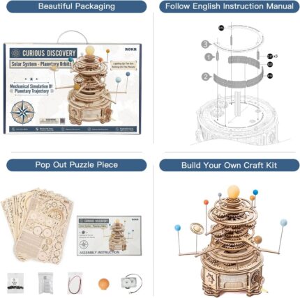 Robotime ROKR 316PCS Rotatable Mechanical Orrery 3D Wooden Puzzle Games Assemble Model Building Kits Toys Gift For Children Boys