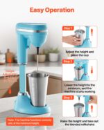 Adjustable Mixing Head: The head height can be adjusted 0–4.8 in / 0–122 mm to fit different cups. With this milk shake maker mixer, you can adjust based on ingredient volume for a more even texture, ensuring smooth results and reducing splashes